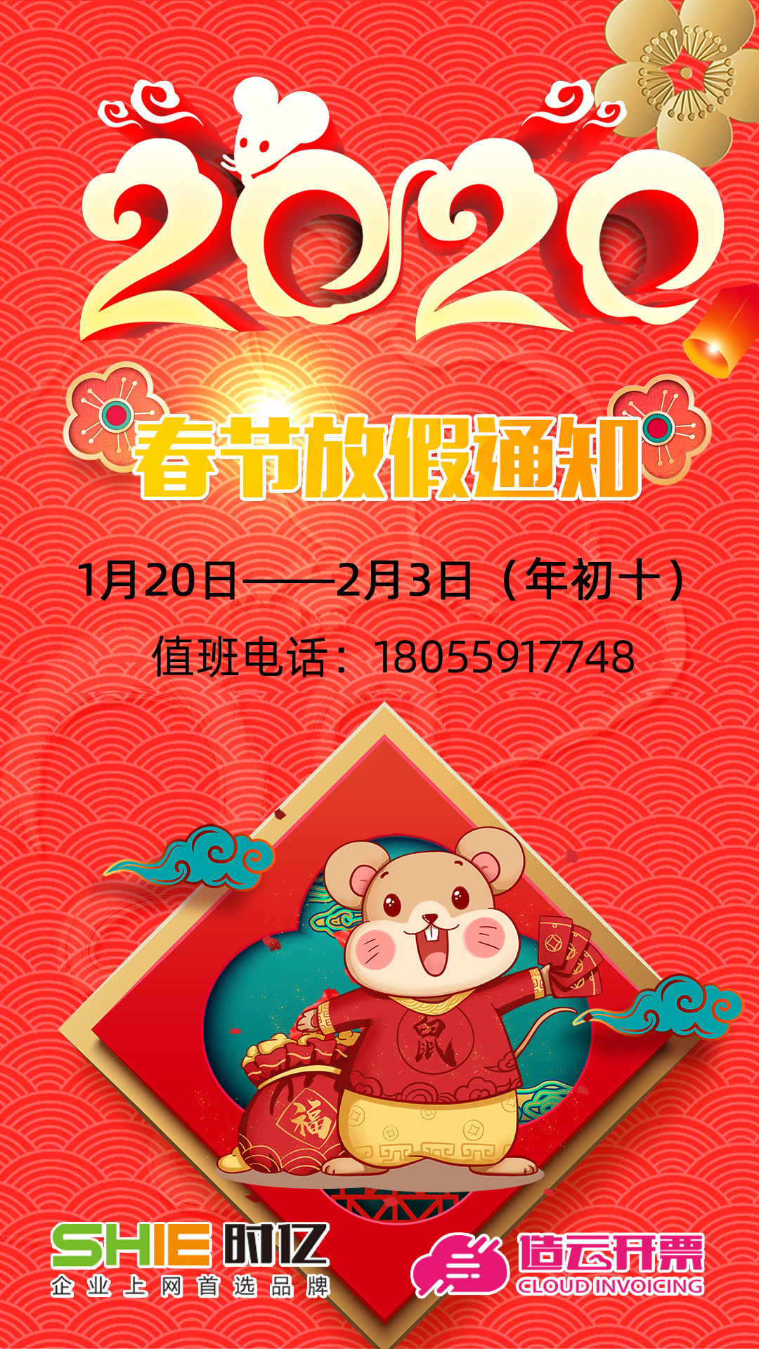 公司新年放假安排:2020年1月20日~2020年2月3日(年初十)