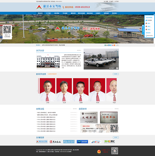 歙縣永安駕校是由縣財政局從浙江蘭溪引資來到古徽州歷史文化名城歙縣,創(chuàng)建于2005年,是我縣歷史上最早創(chuàng)辦的駕校,本著熱情服務(wù)于社會各界,以誠信服務(wù)于學(xué)員,以“創(chuàng)建品牌駕校,培養(yǎng)優(yōu)質(zhì)人才”為己任,積極進(jìn)取,謀求發(fā)展,F(xiàn)駕校占地面積35000m2,教學(xué)綜合樓3000m2,有三聯(lián)公司小型汽車科目二考試設(shè)備一套,桑塔納考試車四臺,各類教學(xué)設(shè)施、設(shè)備較為齊全。二OO八年我校被中共歙縣縣委、縣人民政府授予“文明單位”稱號。二O一O年榮獲全省道路運輸行業(yè)“文明單位”,歙縣浙江商會副會長單位,歙縣民營企業(yè)家理事單位。