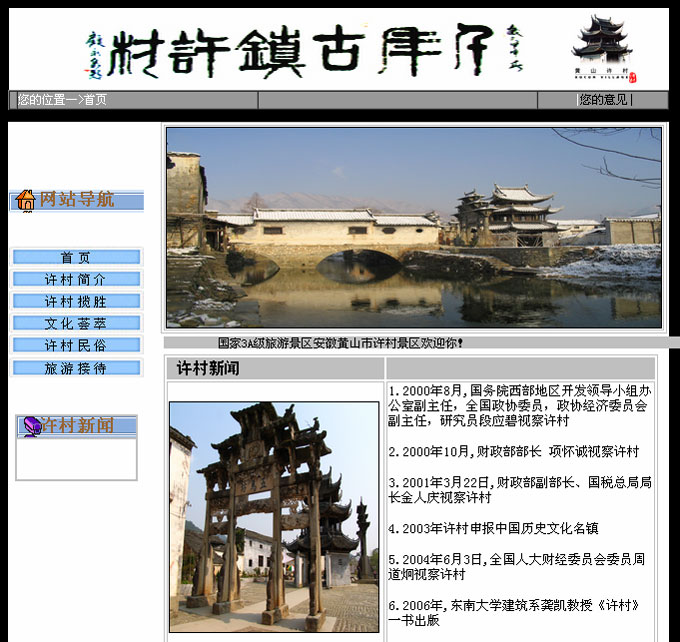 徽州第一進士村-許村源于東漢,古稱富資里,南朝梁時,新安太守任昉看中此地風水,辭官歸隱于此,村名遂為“昉溪”。到了唐朝末年,戶部尚書許儒為避戰亂,徙居于此,嗣后人丁興旺,改名“許村”。大學士許國,末代翰林許承堯均是許村后裔。宋仁宗欽賜為國捐資的許克復為“大宅世家”。宋王安石為《古歙許氏宗譜傳》做序。許村歷史上先后共出進士四十八人,為徽州古村落之最。南宋以后,徽商崛起,許村依托著安慶府和徽州府之間的徽安古道迅速繁榮,至明清時達到一個頂峰。近代以來,許村繼承發揚優良的教育傳統,出現了“一門五博士”“四院士”的盛況,為共和國貢獻了一大批人才,成了聞名遐邇的中華古村落典型。